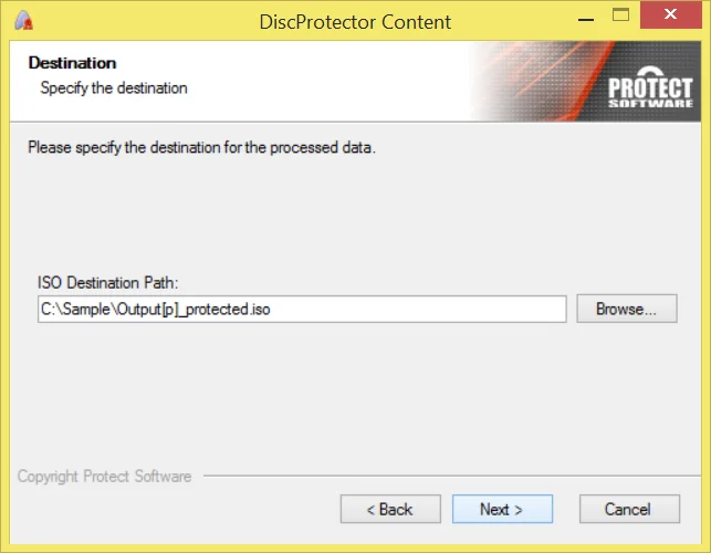 | Default destination path | DiscProtector will always default to the directory specified here when browsing for a destination folder. |
